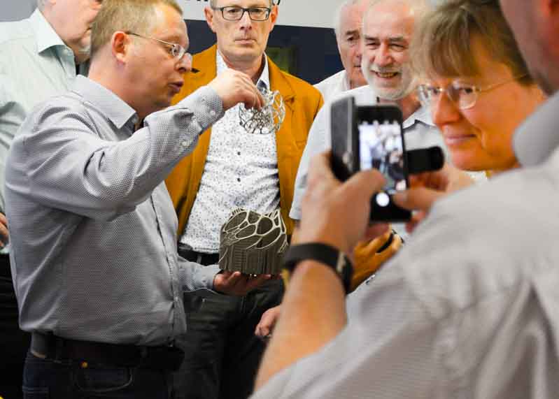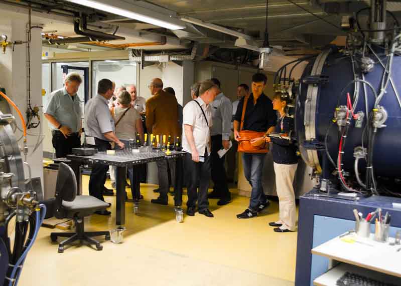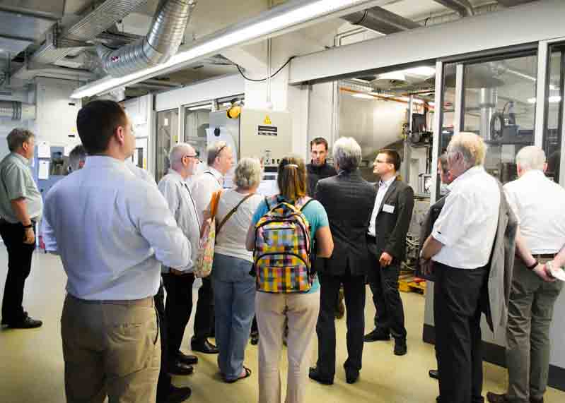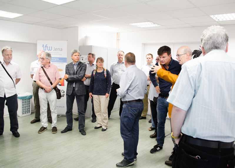 Der Samstagvormittag war reserviert für eine Besichtigung des ifw Jena. Dr. Steffen Dahms, Dr. Martin Kahle und Thomas Schmidt führten durch die Räume und demonstrierten den Gästen die verschiedenen Anlagen und Prozesse zum Diffusionsschweißen, zum selektiven Laserstrahlschmelzen, zur Werkstoffprüfung und zur Lasermaterialbearbeitung.